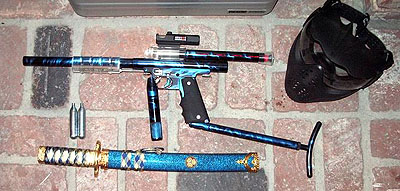 L to R: Laser sight, Bushnell 3x32mm scope, and Laseraim